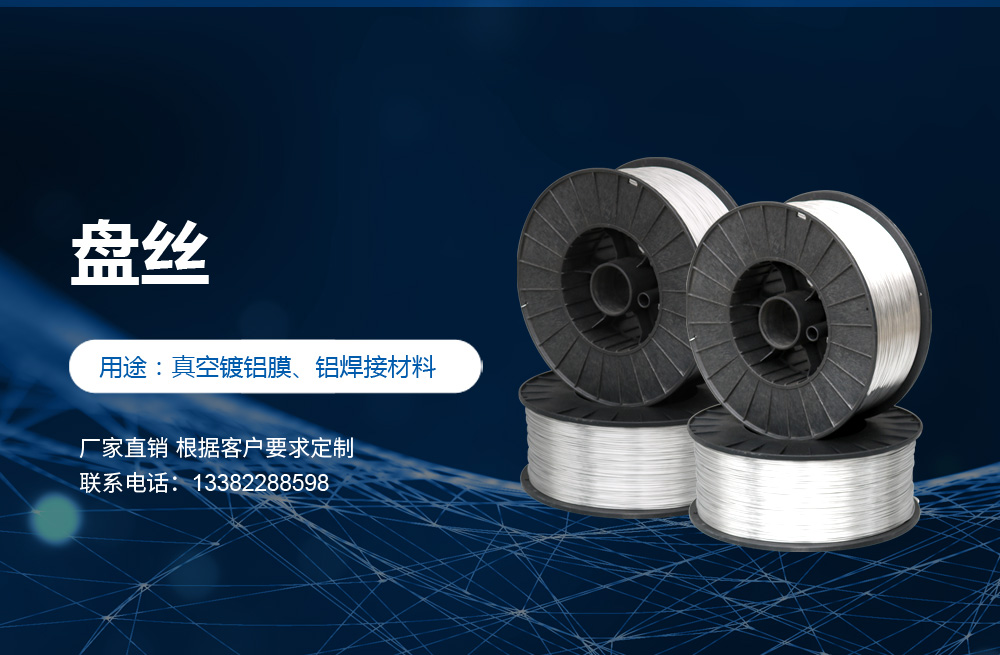 高純度鋁絲:公司主打產品。SGS認證產品,適用于真空鍍鋁。純度99.9%。可為客戶量身定做生產的各盤裝鋁絲、鋁直條。產品應用領域十分廣泛,如:真空鍍鋁膜、電器儀表、電子、家電業、電線電纜業、建筑裝飾業、五金裝飾業、IT電腦業、廣告裝飾業、醫療器械、工藝制品、防腐制品(大型港口、橋梁、碼頭)、食品包裝容器、紡織服裝等。